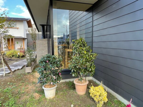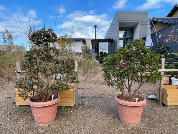 椿は咲き始めているので HARUMACHI coffeeの窓から見える位置に仮置きして、花の植え替えが終了したら 冬が来る前に定置していきたいと思います。