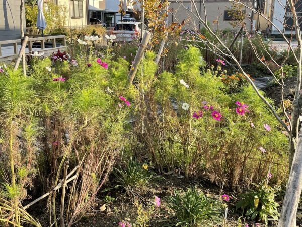 広範囲に植えたコスモスが残り少なくなってきました。