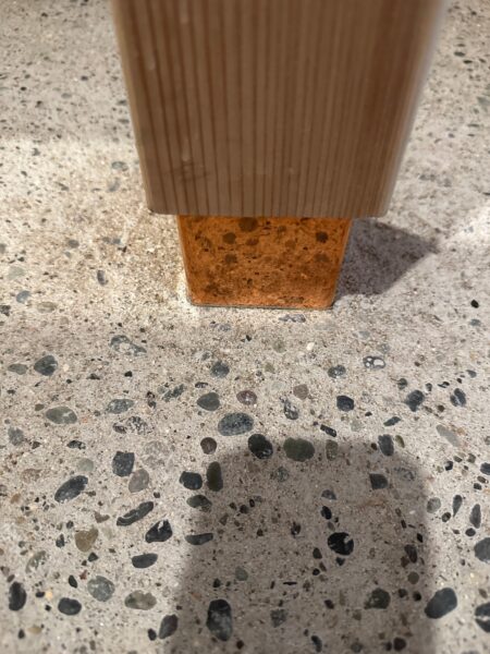 こちらは玄関に設けたシューズクロークへ通じるパーティションの方立てに巻いた銅板です。