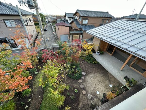 道路側のお庭は日本庭園風にして、こっち側のお庭は将来的には季刊誌『チルチンびと』に出てくるような、木や草花にあふれたお庭にされたいとご主人。これからの経年変化がとても楽しみです。