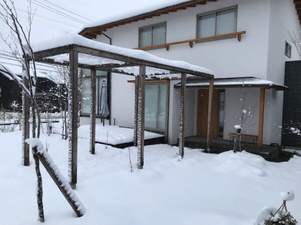 HARUMACHIガーデンも雪で真っ白です。今朝、HARUMACHI coffeeの店長が雪かきをしていました。私も微力ながらお手伝いをしましたが、サラサラ雪なので負担は少なくて済みますが量が問題です。