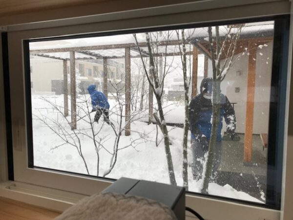 子供だったら喜んで雪遊びができる位の量ですね。家を建ててから思ったのですが、土地探しやプランの段階で、除雪車が家の前を通るかどうかはかなり重要なポイントだと気づきました。我が家は幸いにして、除雪車が通る道路に向かって車を停める配置になっています。除雪車が通ったあとの「置き土産」は残りますが、それを払ってしまえば通ることができます。でも隣の家の方は、除雪車が通らない道路に向かって車を停めており、毎回雪かきと、車の出し入れに大変苦労をしています。除雪車が通らない道はガタガタ道ですのでタイヤがハマりかねません。新潟市は海に面していて降雪量はさほど多くはありませんが、毎年数回、今日のようにドカッと雪が降りますので(今日の雪は多すぎますが)、前面道路や駐車場の向きには注意をして土地やプランを考えることをおすすめします。