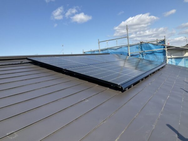 現在、先週から当社の展示場に太陽光パネルを設置する工事を始めましたと書いておりました。今週のはじめに太陽光パネル設置しまして、内部では蓄電池やパワーコンディショナーと分電盤の設置を行いました。さらにどのくらい発電した電力を使用しているかを測定する計測器も取付を行いました。また、発電ができるようになるまでご期待下さい。