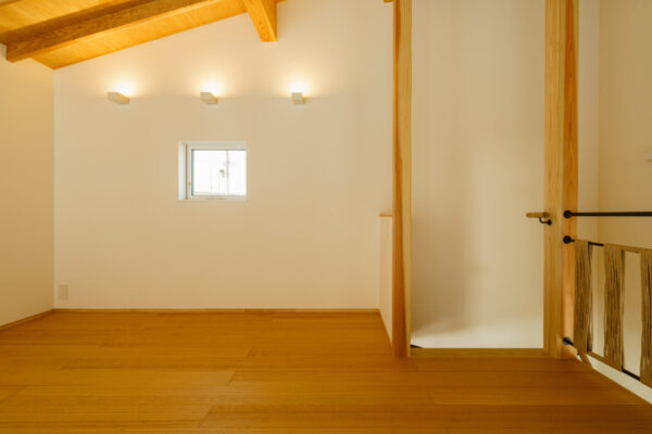 またダイニング上部の吹抜け部分を利用して2階のフリースペースの開口部へと温度差換気(重力差換気)を利用できるように「通風」設計をしております。