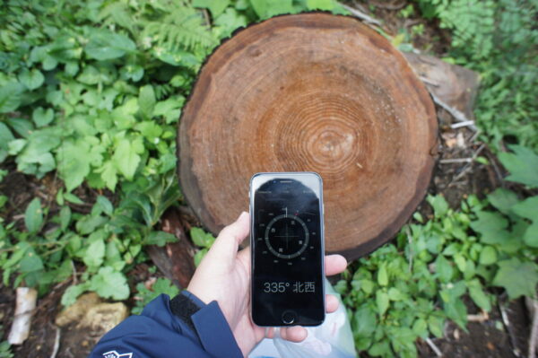 こちらは切株の写真ですが、方位によって木の成長が違うのが面白いですよね。
