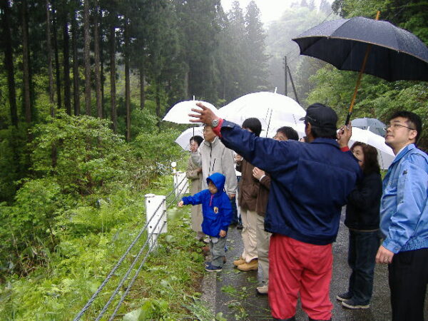 こちらは私が入社するかなり前の、2007年に開催された伐採見学ツアーの一コマ。