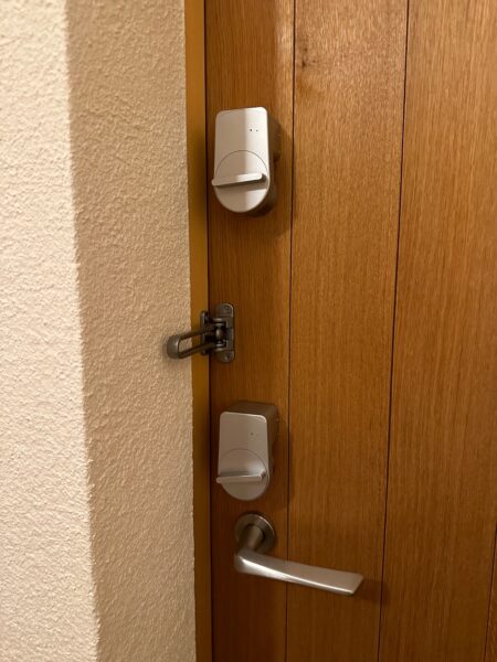 13,000円なので、迷っている方は即購入された方が良いと思いますし、「木製玄関ドアだから電気錠は諦めよう・・・」「電気錠にしたいからアルミ製の玄関ドアにしよう」と迷っている方にも、やっぱり木製玄関ドアは良いので、SESAME5を購入されるのを前提に木製玄関ドアをお選びいただきたいなぁと思います。