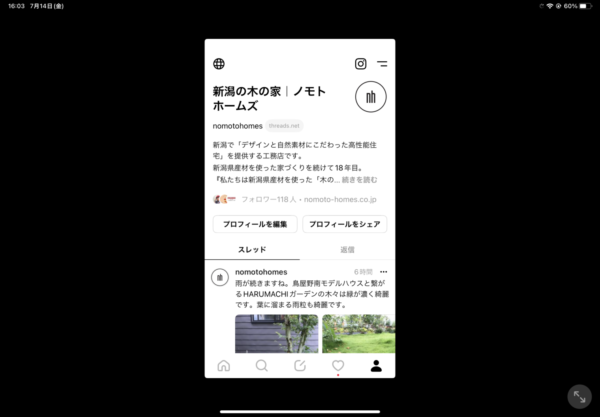 Meta社が先日リリースしたSNSアプリ「Threads(スレッズ)」をノモトホームズも始めました。Twitterのような機能ということで、Instagramでは投稿しないような内容で発信すると面白いかと個人的に思っています。今はまだ遠慮がちに投稿していますが、ノモトホームズの日常風景や、私が見たスタッフの一面とかを発信していければと思います。Threadsの方も見ていただけると嬉しいです。「いいね」をもらえるともっと嬉しいです!