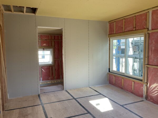 こんにちは!皆さまも連日の猛暑により夏の疲れが出やすい時期であると感じています。現在の新潟市中央区の現場ですが、内部では天井組みや耐力面材を張りをしています。ユニットバスの周りも石膏ボードを張りまして来週ユニットバスを設置する予定にしております。外部では屋根工事を行いました。屋根屋さんも一日で本屋根と下屋をガルバリウム鋼板葺きをしていました。屋根屋さんも外にいるので日焼けをしておりました。私も現場に来ると汗が吹き出しました。現場でもこの時期は熱中症対策でこまめな水分補給が必要です。このたび、中間見学会のために内部にエアコンを設置しましたので快適に見学ができるようにしています。普段なかなか工事中の内部が見れない方は、この機会に見学してみてはいかがでしょうか。