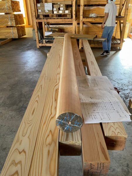 住宅で使用する柱は、四角と丸柱を使います。四角の柱は、芯持と芯去りがあります。丸柱は、京都の北山杉のように芯持で背割をした柱を使います。検品の柱は、奈良の東大寺大仏殿と同じ芯去柱を使います。