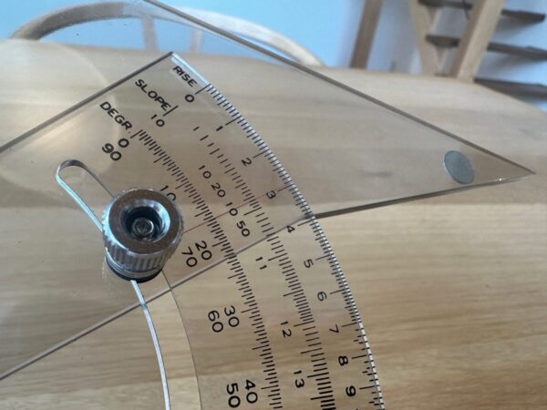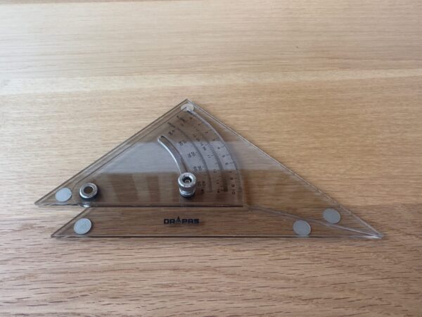 設計者なら誰でも知っている「ドラパス社」製の勾配定規です。真ん中のねじをくるくるっとやって、好きな勾配に合わせます。