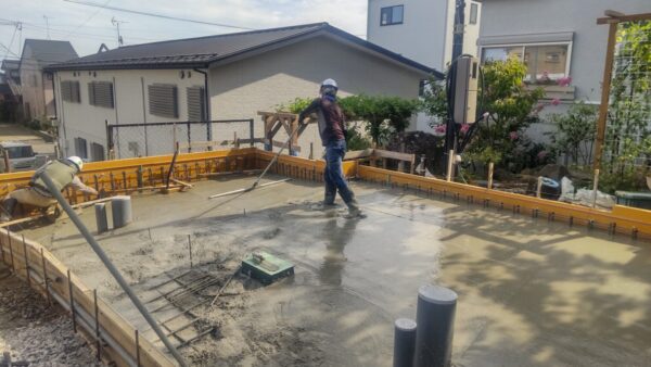 現在建築中のカーポートの現場ですが、土間コンクリートを打設しました。気温も高く職人さんも朝から大変でしたが、作業の方も順調に進みました。明日立上りや階段のコンクリートを打設する予定です。引続き工事がスムーズに進められるように調整していこうと思います。
