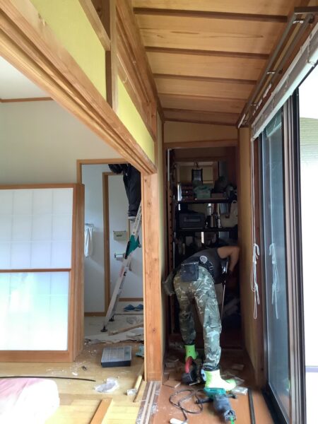 室内の壁仕上げは土壁で下地には今には手の込んだ貴重な土と竹を使った下地を施工しており、大変趣のある仕上がりのものでした。