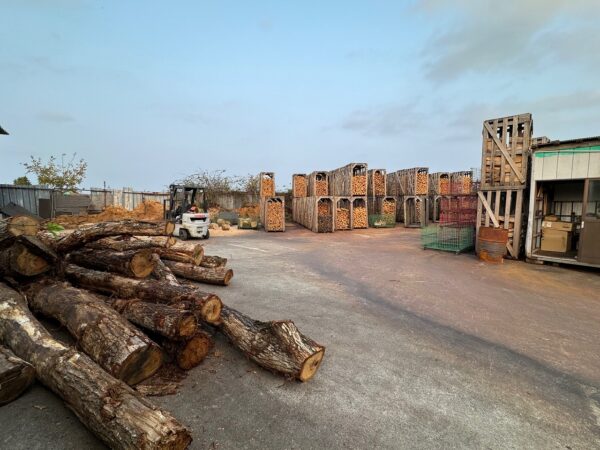 薪棚からトラックに薪を積み込むときに、薪と薪の間で冬眠の準備をしていた? 子供の蛇がでてきました !! 薪屋さんを呼んで、優しく移動してもらいました。蛇の名前は「アオダイショウ」です。