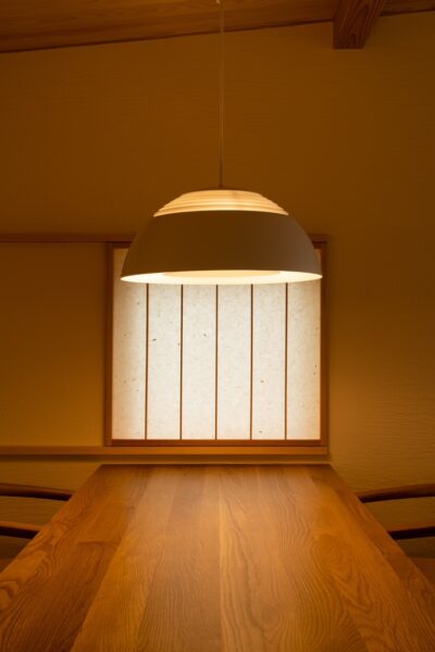 こちらは、ダイニングテーブル横に設えた和紙を用いた障子戸、自然光を和らかくし部屋の奥まで届ける障子。