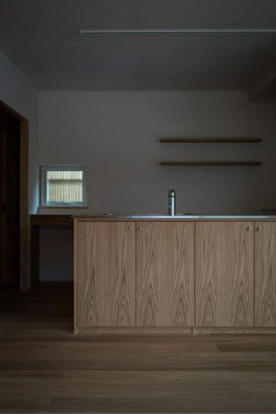 ちなみに当日は曇天で夕方4時頃の撮影でしたので、かなり暗めに写っておりますが、照明を付けるとオレンジ色に映ってしまうため、アンドウッド遠藤さんのこだわりで自然光だけで撮影いただきました。ですので若干暗めですが、それもまたオークの自然な色合いが感じられる写真になっているかと思います。