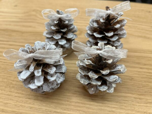 写真は洗った松ぼっくりを乾燥させるために並べている常務と渡邉さんです。