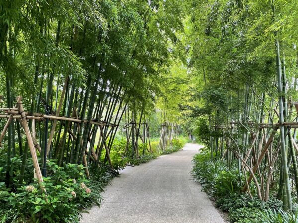 都心の真ん中にあるホテル。竹がたくさん植えられました。インバウンドのおもてなしです。園路の散歩で情緒を感じさせます。