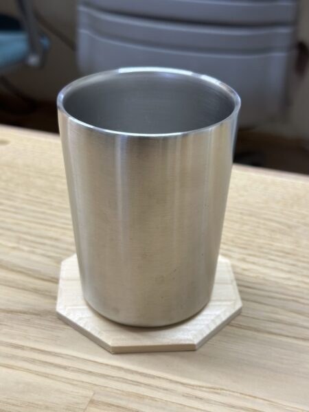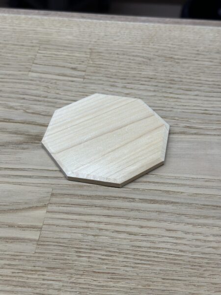 完成したものはこちらです。ヒバ材の可愛らしい八角形コースターが出来ました。難易度はそれほど高くはなく、こちらのコースターはワークショップのイベントなどで開催できればなと思います。小田さんありがとうございました!