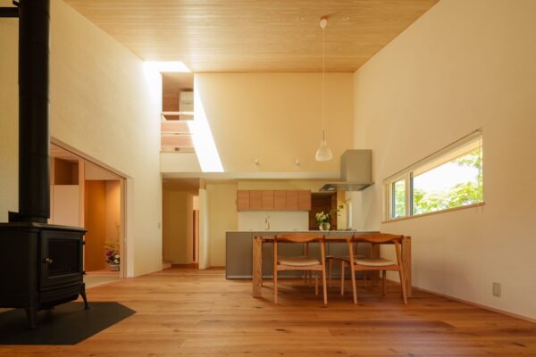 近隣住宅との関係性も配慮をしながら光をどう採り入れていくか、北面の開口は熱損失上も小さく設けるものが必須となって、穏やかな北面開口からの日差しもまた採り入れる事が難しくなりました。