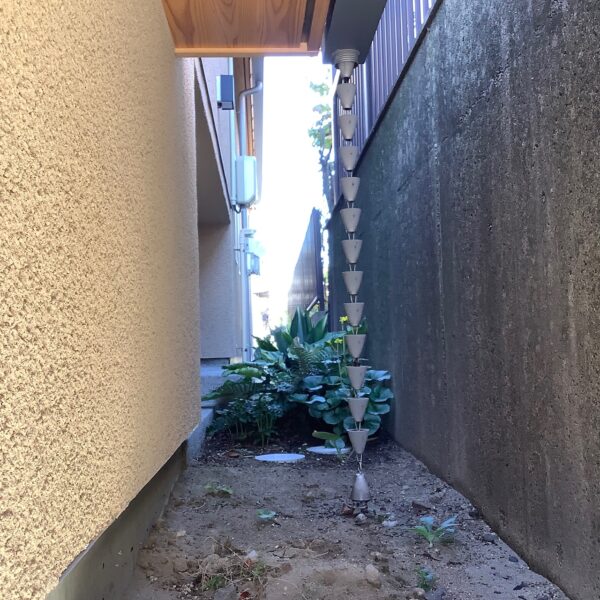 こちらは、玄関に繋がる緩やかな階段を登ったアプローチ横の開口部に面する境界に設け、玄関前に立った際に視覚に入る様計画されたものです。