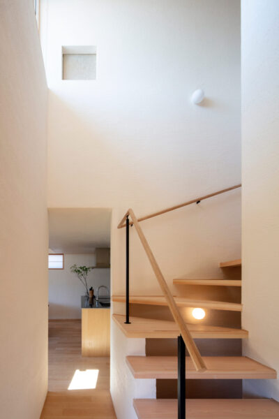 その住まいの空間の仕上に合ったご提案をさせていただく中で、スチール製や木製の手摺受で段板と調和する、モダンでありながらも和のテイストを活かす仕上げとし、