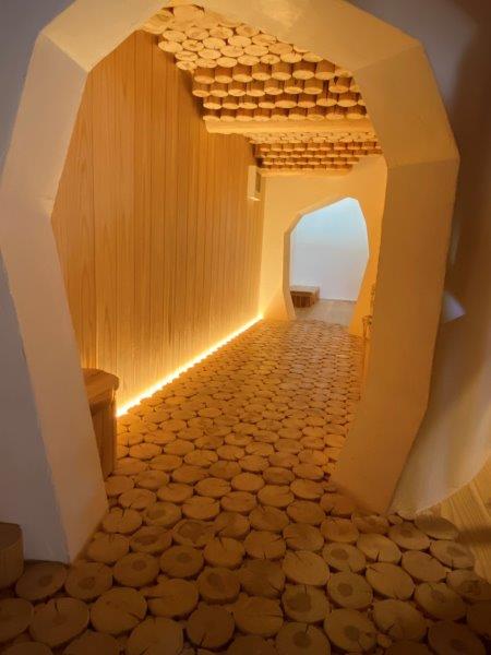 天井は低く、床は傾斜やうねったり段々だったり