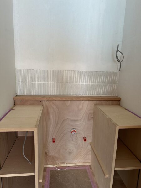 建主さまから選んでいただいたこだわりのタイルは綺麗に張られ完成がより一層楽しみになりました。