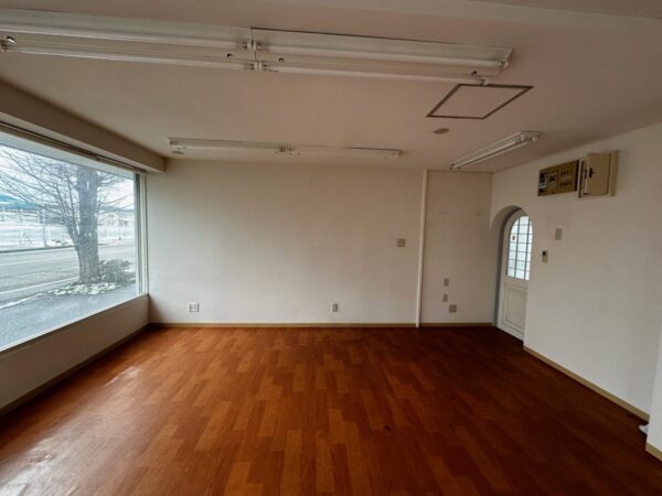 コンクリートの床にクッションフロアが敷かれた、よくある店舗の内装。