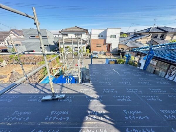 屋根の下葺材は改質アスファルトを主な構成材料とした改質アスファルトルーフィングと呼ばれるもの貼っています。