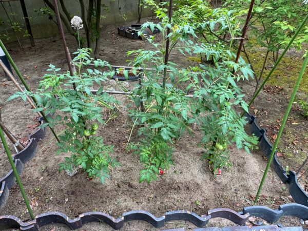 ときどき庭に穴を掘って生ごみで堆肥を作っています。今年は、そこからカボチャとトマトが芽生だし元気に生長してきたので、移植して元気に育っています。ハチさんませでなく受粉させて、一つは収穫したいと思います。