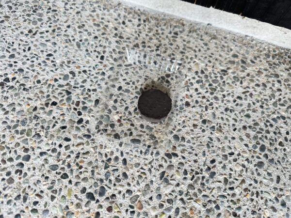 ヘビ団子、水に塗れると土間を汚すとの記載がありましたので、通常はお皿の上に載せて設置するらしいのですが、家になかったため朝食で食べた味付け海苔のトレーを転用しました。。。