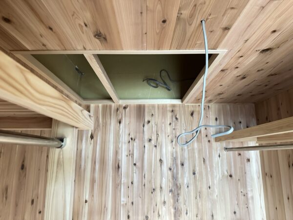 こちらは小屋裏エアコンの真下に設ける、天井点検口。