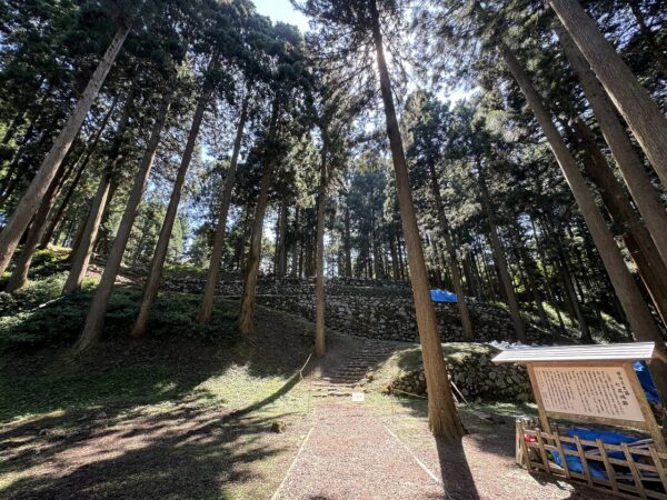 途中で立ち寄った、七尾城跡は石垣が崩れて立ち入り禁止のロープが貼ってあり登城出来ませんでした。こうした観光地の整備は最後になるのでしょう‥‥。