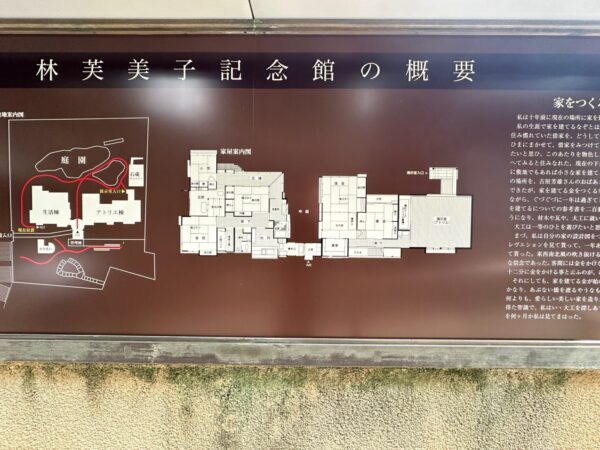 設計者は山口文象で、素材の持つ自然な風合いを生かした質素ながらも上品さを感じる数寄屋造りと、芙美子らしい民家風のおおらかさを合わせ持った建物になっています。