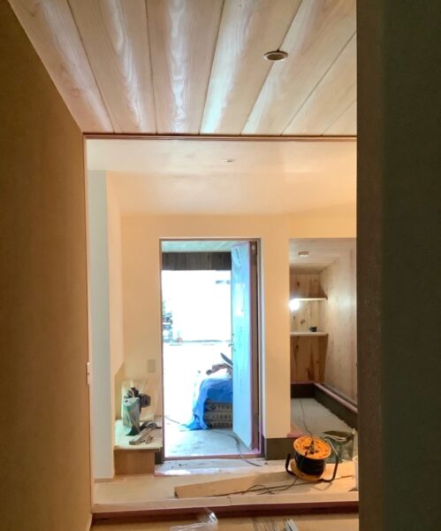 以前にもご紹介をさせていただきました「江南の家」竣工に向けて現場では、各居室内の壁天井漆喰の仕上を終えて玄関・広間土間の砂利洗い出しの施工を終えて庭に繋がるテラスの洗い出しを残すところとなりました。