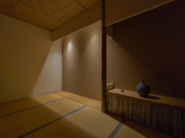 夜になると、左官壁はまた違った表情を見せてくれます。間接照明からの柔らかな光が陰影を作り、落ち着いた空間を演出します。