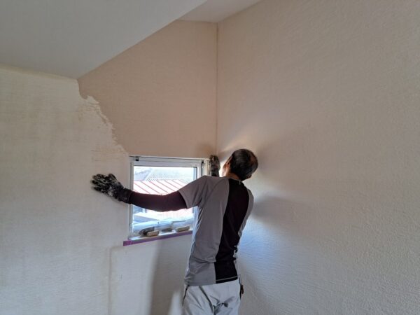 先日、建主様の漆喰の補修に左官職人おなじみの佐藤左官さんとお伺いをさせていただく。