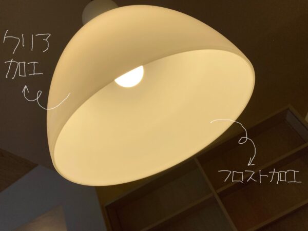 内側をみてみると…、優しく光を反射するためマットなフロスト加工