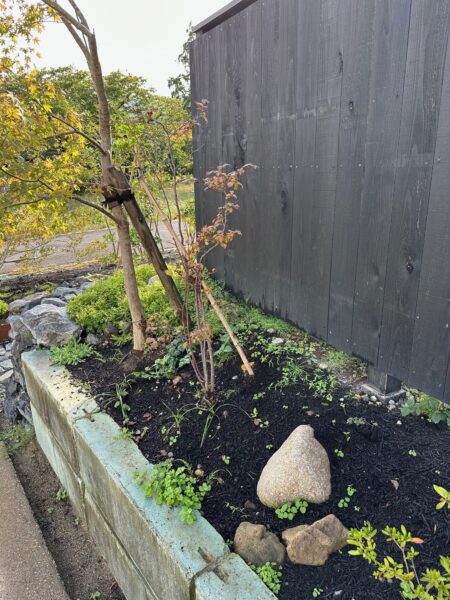 植栽エリアと砂利部分の境界にはコールテン鋼の鋼板が使われおり、とても雰囲気が良かったです。