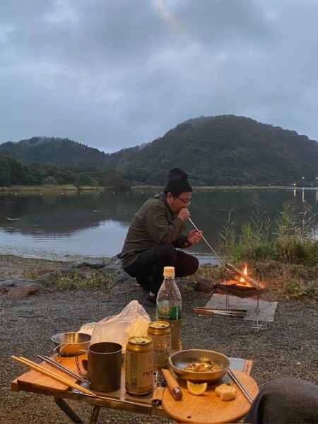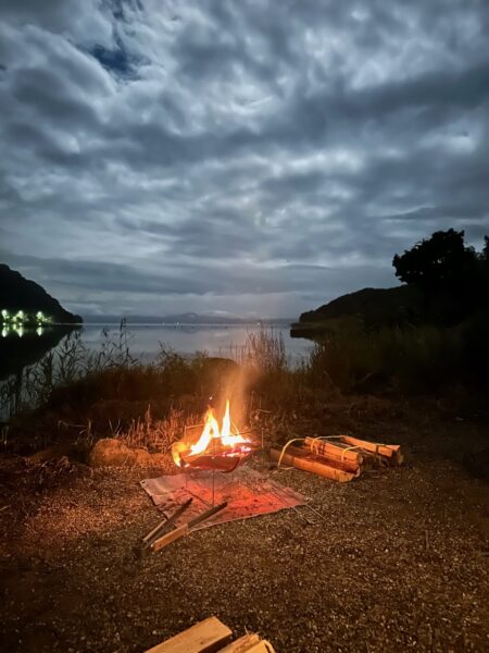 猪苗代湖と焚火を眺めながら、お酒を飲みながら語らう最高のディナーでした。