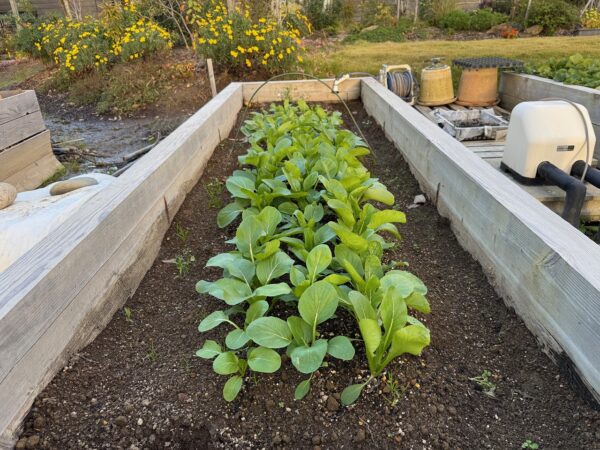 9月に畑を耕し、大根と小松菜の種を蒔いてスクスク育ってきました。秋から冬にかけて収穫が待ち遠しいです。しっかり育ったら、お料理にも使えそうで、楽しみです!
