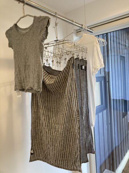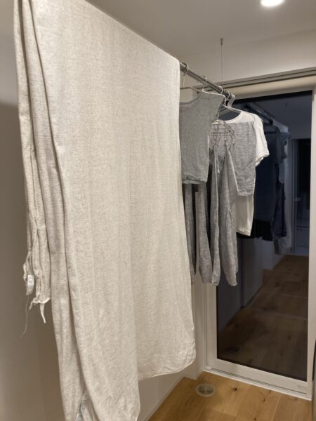 シーツやちょっと厚めのタオル、シャツ、 靴下付近などを干してみました。