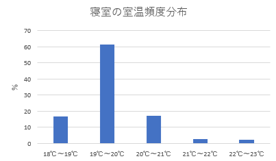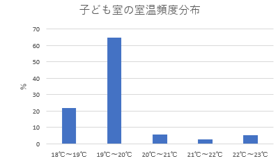 構造上、床下エアコンによる床下の暖房区画とは、少ししかつながっていない一番奥の部屋になるため、19℃~のレンジが多くなっていることがわかります。十分暖かな環境です。