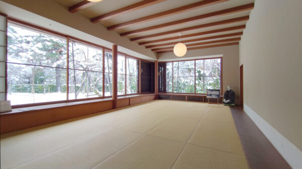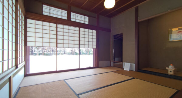 25畳の画廊は、雨戸、障子をすべて引き込み解放できる作りになっており