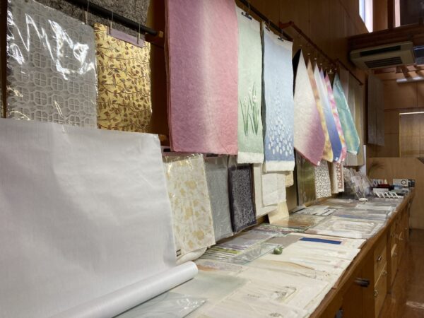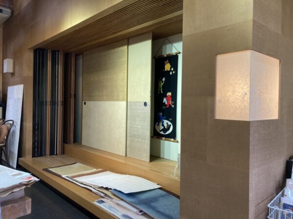 店内にはさまざまな襖戸、和紙のサンプルがところせましと並べられておりました。