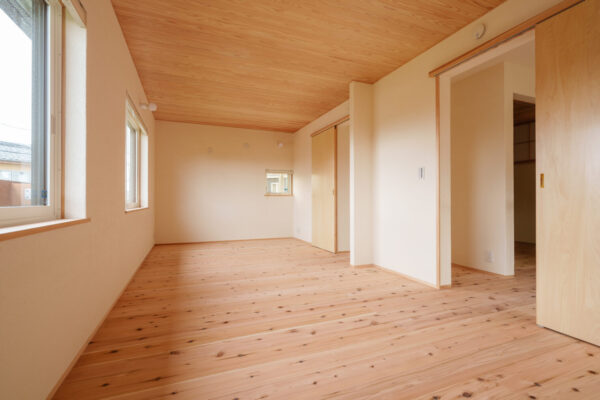 以前の家づくりは廊下が広く、長く、個室(部屋数)が多い家づくりが主流でしたが、ノモトホームズの家づくりは無駄な廊下をなくし、子ども室はワンルームとし、将来、2室や3室に分割して使用できるようにしたりと工夫しながら設計をしています。そうすることで全体の坪数を抑えることができ、空調計画もしやすくなります。