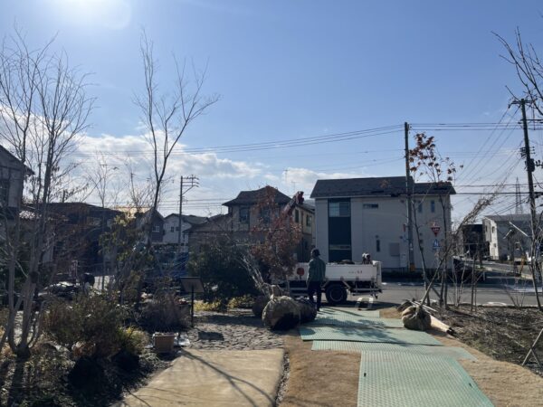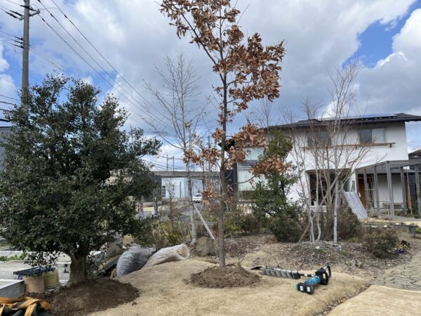 モデルハウスのお庭に新しい木々をお迎えする工事をいたしました。