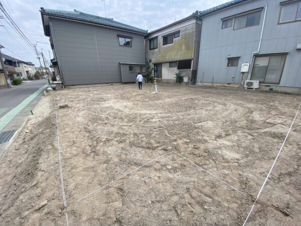 東区の現場は解体工事が終わり、地盤調査、地鎮祭を前に着工準備が着々と進んでいます。