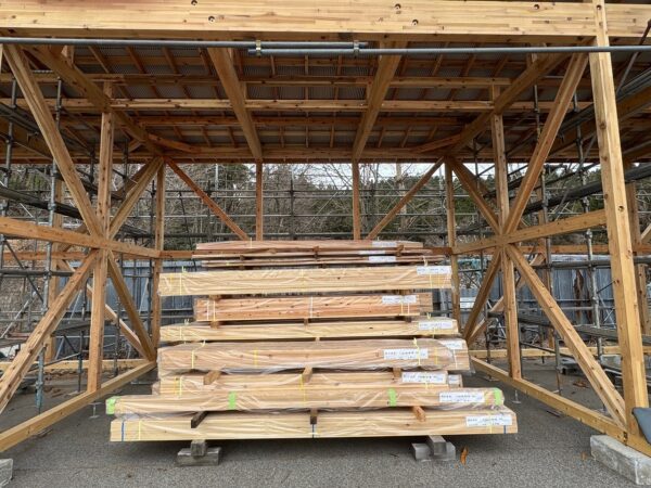 国道七号線峠付近は、道路のわきにまだ残雪が残っています。今回は山北木材協同組合に早く着いたので工場見学をしました。伝統的な木造建築の技術を現代のコンピューターと機械加工技術で継承し、高精度なプレカット加工をしています。CAD・CAMシステムの導入により、継手や仕口の加工が自動化され、効率的かつ高品質な製品供給が可能になっている点が強と思います。